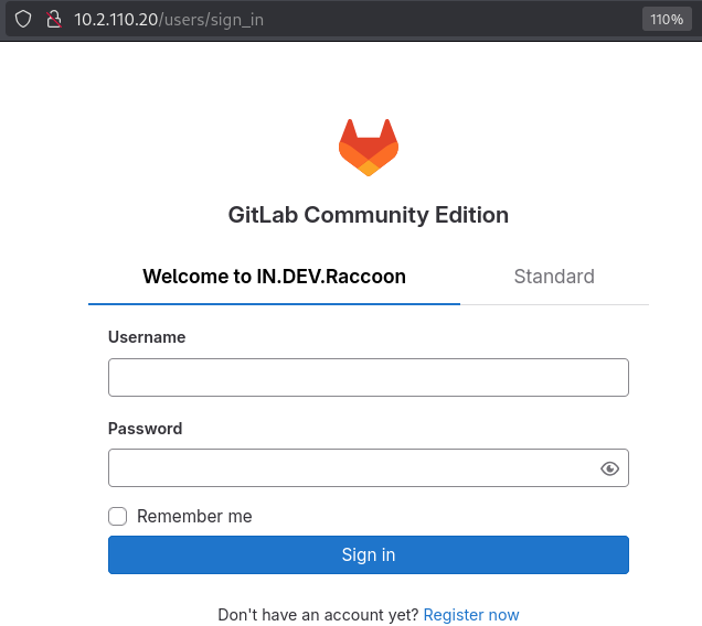 IN의 도메인 컨트롤러인 idc01.in.dev.raccoon의 SYSVOL 쉐어에 접근이 가능한 것으로 보아 IN 도메인의 유저 중 하나라는 것을 알 수 있다. IN에도 블러드하운드를 실행할 수 있겠지만, 일단은 레드팀의 목적을 모두 달성한 것 같기 때문에 먼저 10.2.110.20를 방문한다.