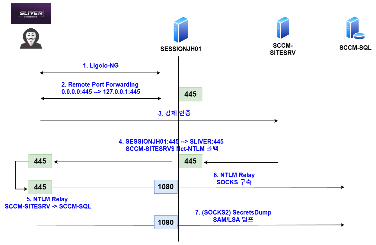 // 4. SITESRV -> SCCM-SQL로 NTLM Relay 구축