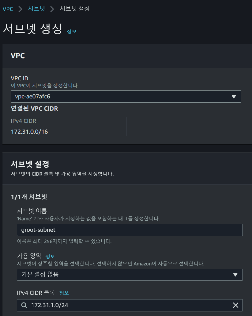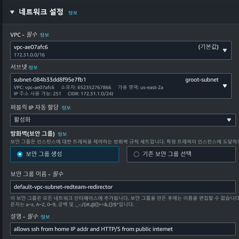 1. 레드팀 전용 서브넷 생성 VPC 서비스를 검색한 뒤 왼쪽의 "서브넷"을 클릭해 이번 실습 전용 서브넷을 생성한다. 이번 실습에서는 다음과 같은 설정을 했다.