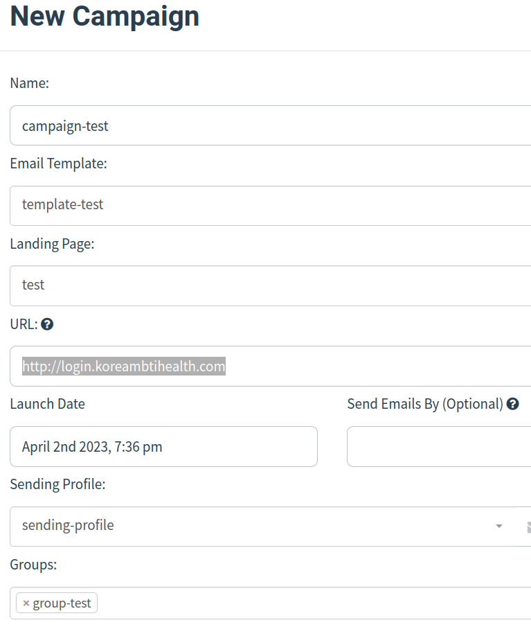 Sending Profile, Landing Page, Email Template, Users & Group을 모두 설정해준 뒤, Campaign을 진행한다.